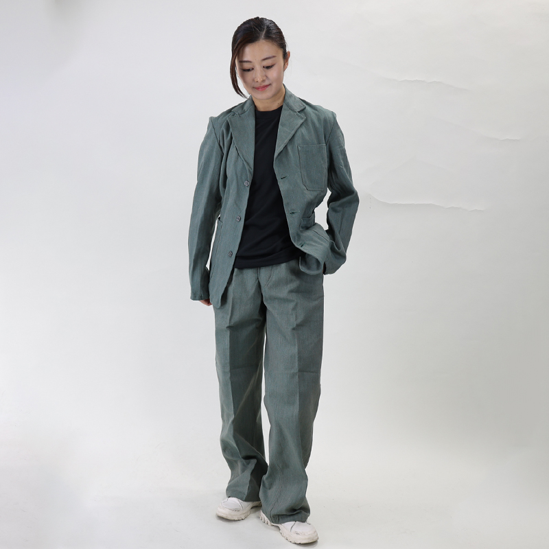 とても囚人向けの服とは思えない品質高い作りで、ヴィンテージ調のファッションとしてジーンズやカラーパンツにもなじむジャケットです。