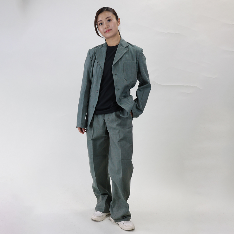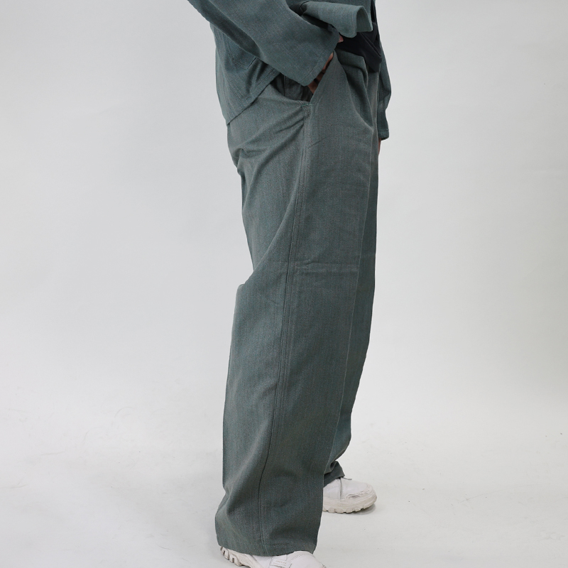スタイルとしてはタックがあり、作業しやすいよう太めのシルエットになっています。