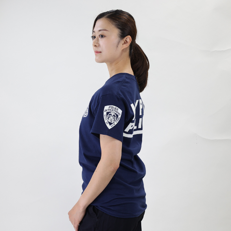 左胸はポリスバッチ、左袖はNYPDの袖ワッペンをそれぞれデザイン、バックには大きなロゴ、の3点プリントです。