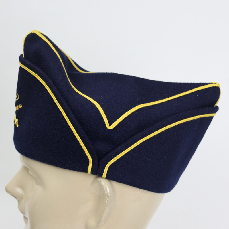 紺色の高品質ウール生地に黄色のラインと独特なカッティングが特徴的で、正面には王冠と2本の大砲がクロスした部隊のマークが刺繍されています。