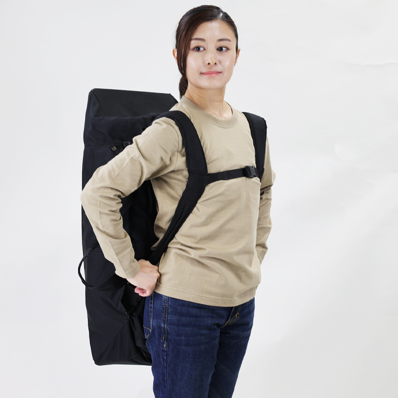 手持ちのハンドルに加え両サイドにはリュックのストラップが収納されており、必要時に取り出すことができます。このパッド入りの調節可能なリュックストラップは、長距離の移動でも快適な持ち運びを実現します。