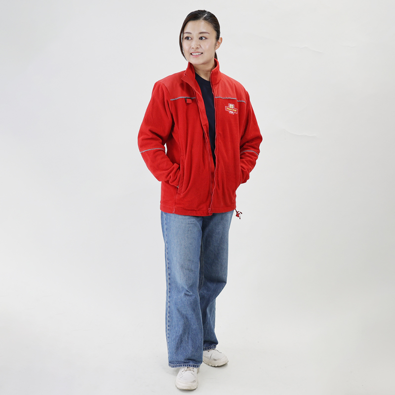 このフリースはスタイリッシュで着心地がよく、そして暖かいことから郵便配達員からも人気があります。シンブルながらも安全性を考えたリフレクティブ(反射)テープと、バックを掛けた際の補強に肩回りには当て布、右胸に鍵や懐中電灯を引っかけるDリングを付け、デザイン性を損なうことなく機能的にしています。