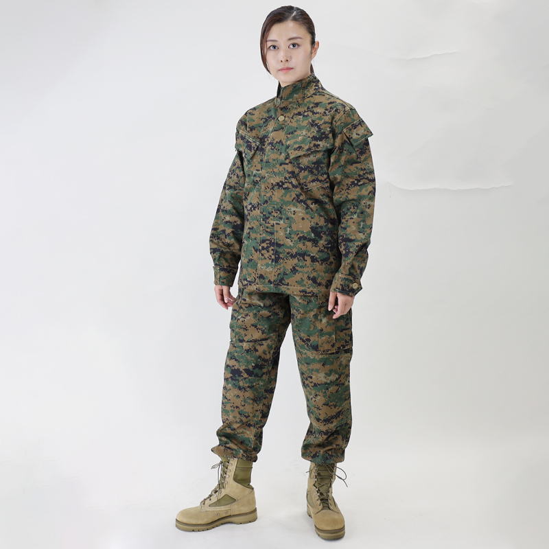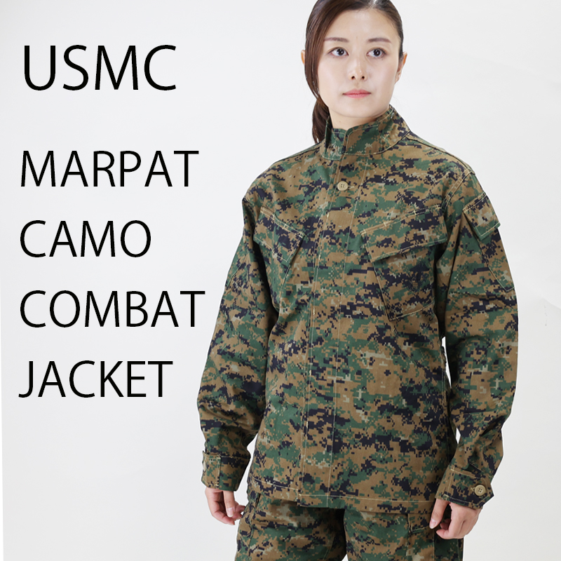 ピクセルカモ(マーパット)は海兵隊専用の迷彩です。この服は通常のBDUとは形が大きく異なり、ジャケットは襟が立てられ、正面下部のポケットがなくなり両袖に付いています。肘にはパットが入れられます。