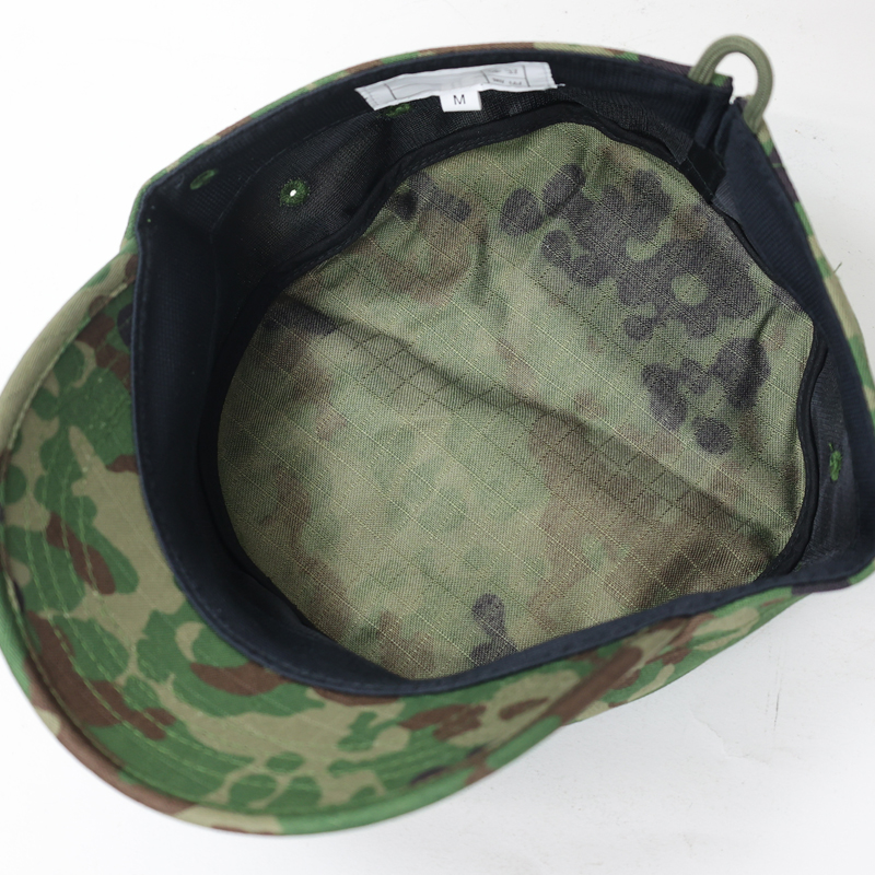 難燃繊維を取り入れたVC生地(ビニロン・コットン)の迷彩キャップ。IR対応の加工も施された官給品に近い生地です。
