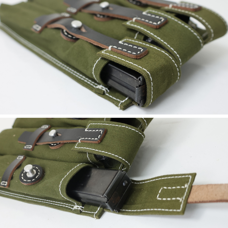 MP40マガジンポーチはバリエーションが色々とあり、こちらは当時の装備品メーカー・CLG社が製造したスタイルです。