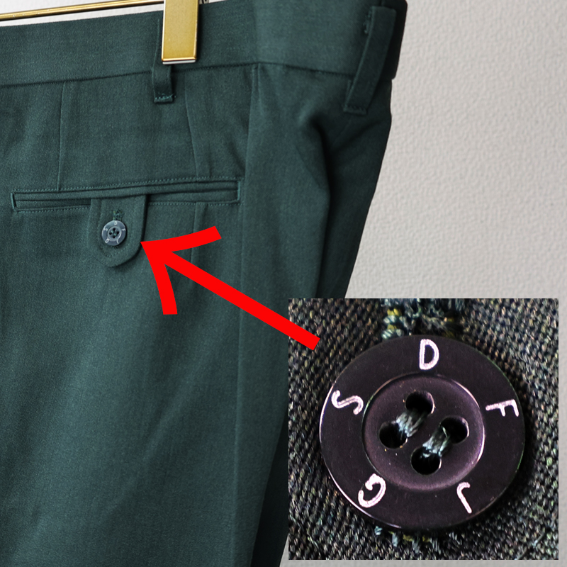 後ろポケットとフロント留めのボタンにはJGSDFの文字が入っています。
