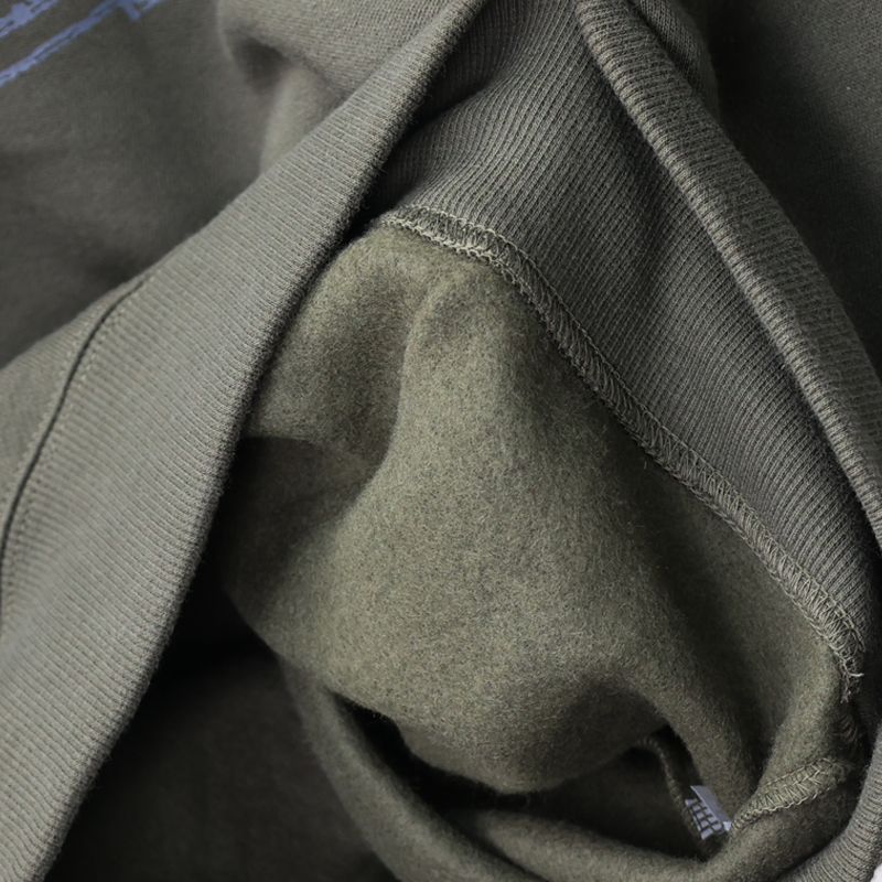 T/C生地を使用しているので、裏起毛&10オンスながら軽やかに着用できます。表地は綿100%で組成し毛玉ができにくくなっています。