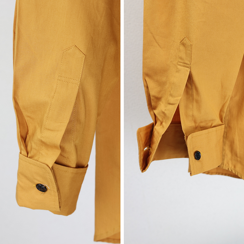 ジャパンメイドでしっかりとした縫製。生地は薄手で丈夫。ダブルカフス。