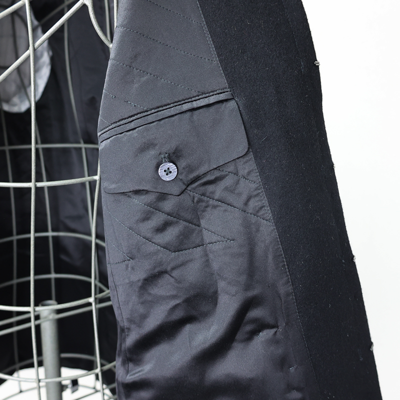 左右3本目のライン下にポケットがあります。左肩口には飾緒用のホール付き。