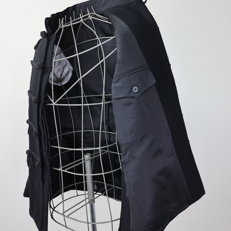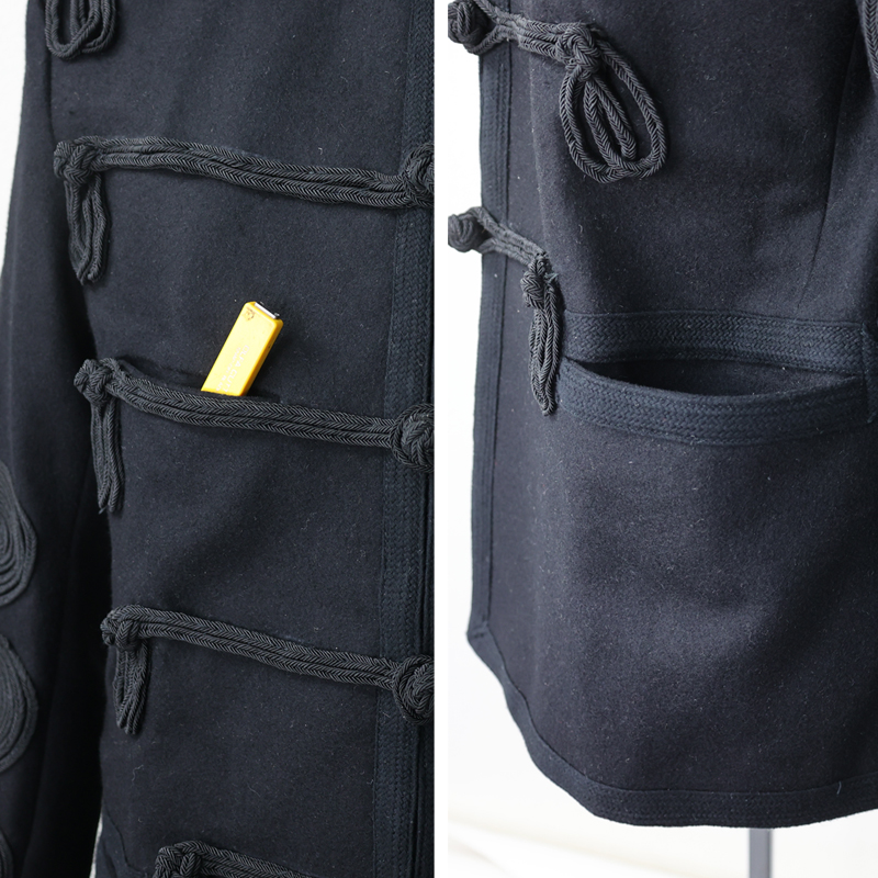 左右3本目のライン下にポケットがあります。(※デザイン的なものでポケットとしての使用はできません) 左肩口には飾緒用のホール付き。