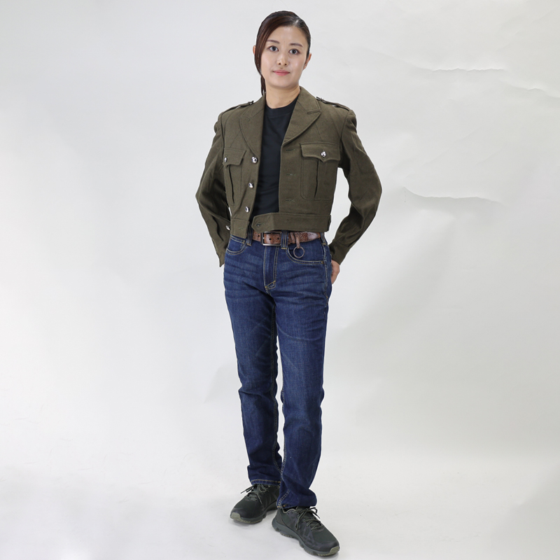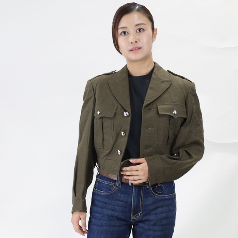 当時によく見られたウール素材で、丸みのあるシルバーカラーのボタンが付いています。